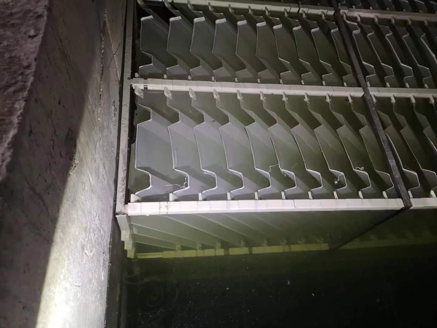 工程概况:范家屯净水厂、七里屯净水厂净水车间日供水量21万m³。处理工艺为波形板絮凝器水力反应、侧向流牵拉式框式斜板沉淀。
